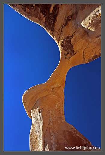 Bei der Verwitterung des Entrada Sandsteins in Utah entstehen immer wieder Löcher im Gestein, die sich zu Torbögen erweitern können. Der Kontrast dieses roten Gesteins zum tiefblauen Himmel Utahs könnte nicht größer sein.